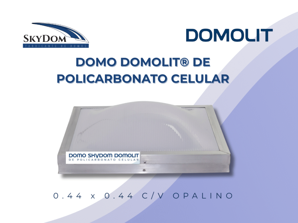 Siempre a la vanguardia en innovación, SKYDOM® desarrolló el domo marca DOMOLIT®, fabricado en policarbonato celular termoformado tipo burbuja. Este diseño único mantiene todas las propiedades del policarbonato, incluida su alta resistencia y la protección contra los rayos UV, incluso después del proceso de termoformado.